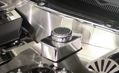 Dress up your Mustang with our Polished - Stainless Steel, Water Tank Cover. These trim pieces are designed to fit over the water tank and add a clean stylish look to your Mustang engine bay.
