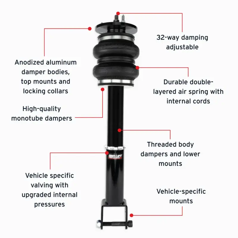 As the leader in air suspension products for over 60 years, Air Lift is committed to delivering quality parts that last. To ensure longevity for the customer, the key suspension components have been tested on a durability rig for over 1 million cycles, which equates to 100K miles. With a 1 year, unlimited mileage warranty, and the Air Lift reputation for great customer service and technical support, you can purchase this kit with peace of mind. Ditch those coils and get to a new level of low!