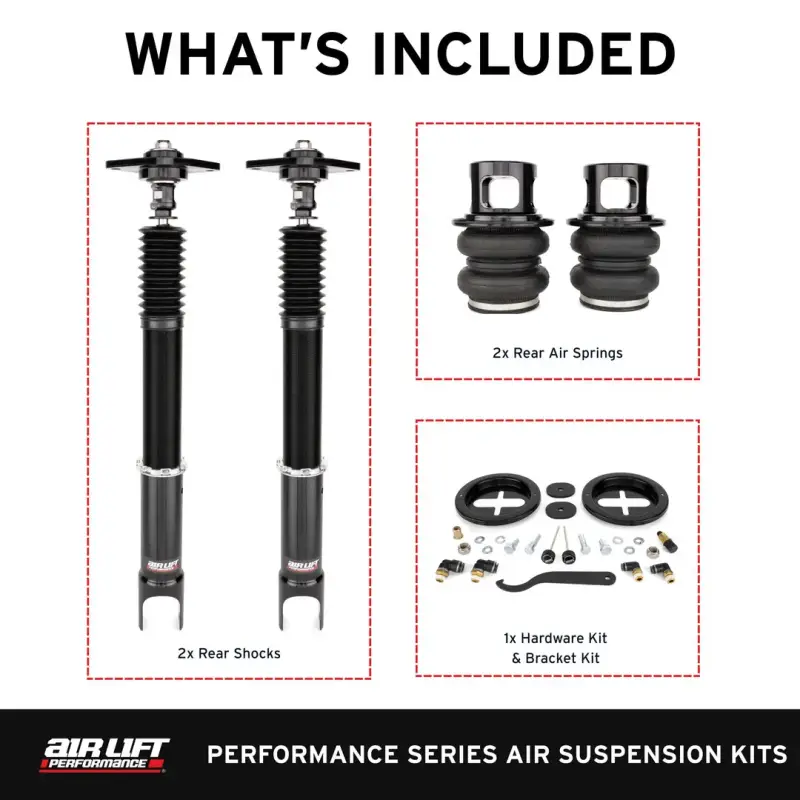 Get the stance you want and the performance you need with Air Lift’s Performance air suspension kits! Every kit we offer is fully engineered to properly fit your vehicle, provide unmatched static drop, and deliver ride and handling capability that exceeds factory suspensions. No other lowering suspension provides a more versatile package for daily use.