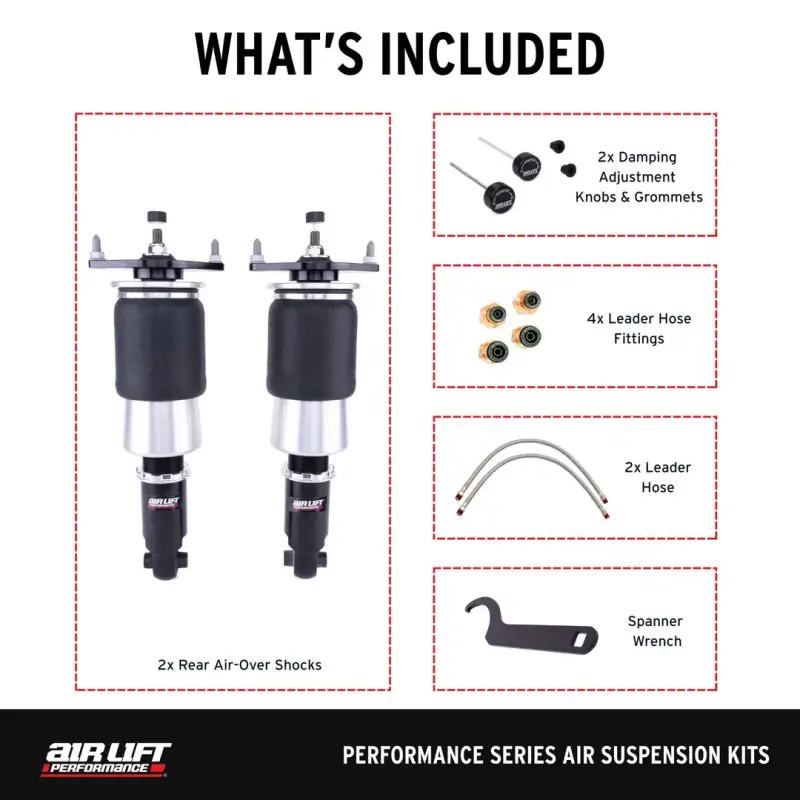 Get the stance you want and the performance you need with Air Lift’s Performance air suspension kits! Every kit we offer is fully engineered to properly fit your vehicle, provide unmatched static drop, and deliver ride and handling capability that exceeds factory suspensions. No other lowering suspension provides a more versatile package for daily use.