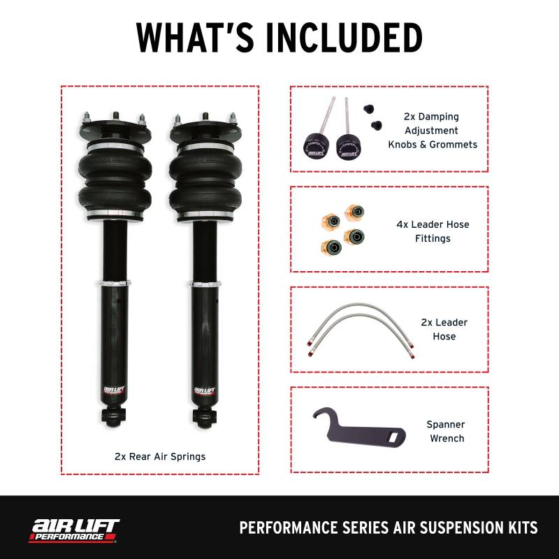 Get the stance you want and the performance you need with Air Lift Performance air suspension kits! Every kit we offer is fully engineered to properly fit your vehicle, provide unmatched static drop, and deliver ride and handling capability that exceeds factory suspensions. No other lowering suspension provides a more versatile package for daily use.