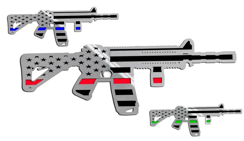AR-15 Gun Flag Thin Blue Line Brushed Stainless 20". Exterior emblems for your Jeep or Truck - Universal fit.